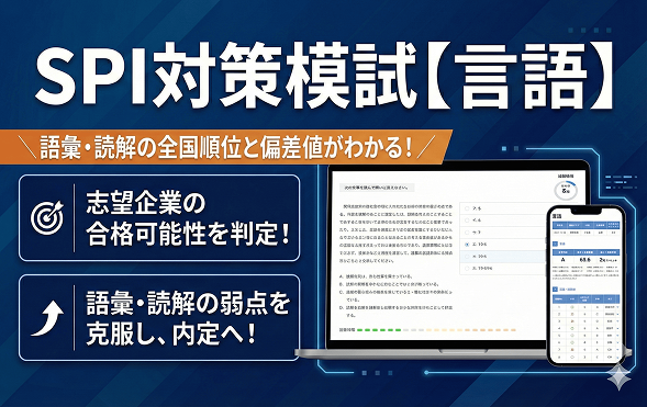このような模擬テストを使って、本番と同じ時間で問題を解いて対策を行います。本番に臨む前に最低でも1回はSPIの模擬テストを受けてみましょう。